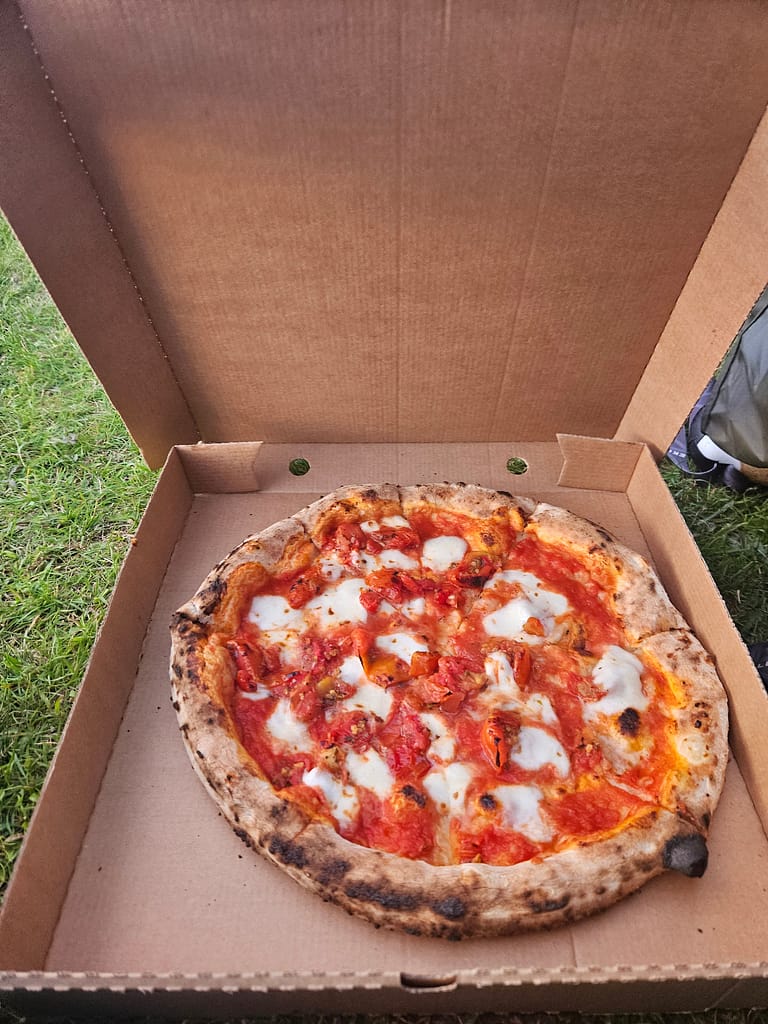 Because today's journey was relatively short, I arrived in Caherdaniel quite early. I stopped in the town first and had dinner. Then I walked to the campsite, about 20 minutes from town. The campsite I stayed in was quite nice, situated on the cliffs by the sea. However, it was quite busy and a bit noisy. Right at the entrance was a pizzeria that made pizzas in a wood-burning oven. Even though I had already eaten dinner, I ordered a large pizza. Afterward, I washed my clothes in the laundromat.