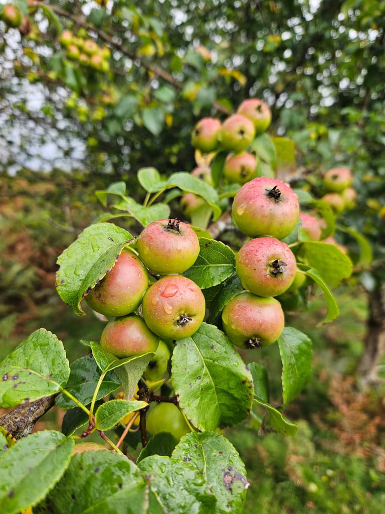 After breakfast at the guesthouse, I set off early without delay. Since today's route was approximately 30 km, I needed to manage my time carefully. It was quite foggy and misty this morning. The first part of the journey was mostly through village houses and farms. As I passed the occasional ruined house, I had the chance to sample plenty of apples from the orchards or blackberries growing along the roadside.